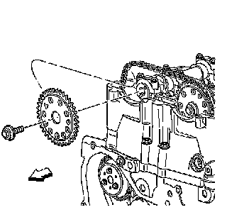 14. Remove the exhaust camshaft sprocket bolt and discard.