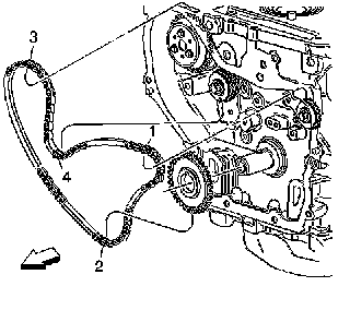 5. Place the chain (3) on the water pump drive sprocket (alignment is not critical).