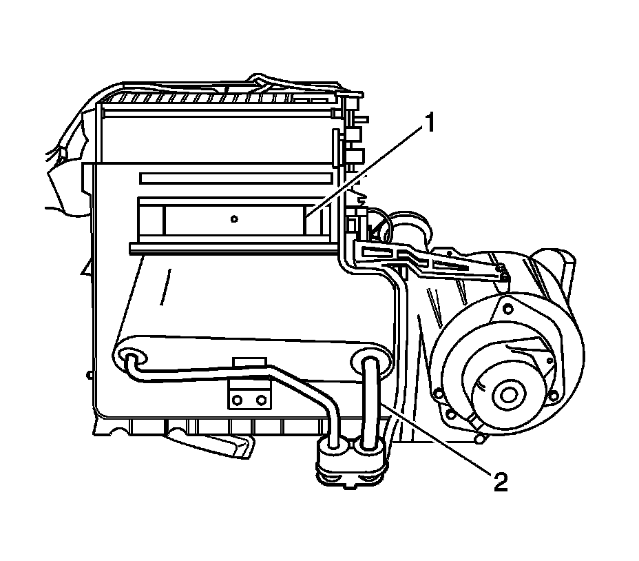 7. Remove heater core (2) from HVAC module.