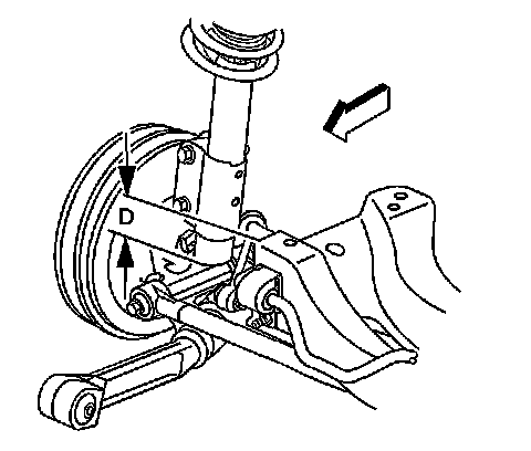 The D height dimension measurement determines the proper rear end ride height. There is no adjustment procedure. Repair may require replacement of suspension components.