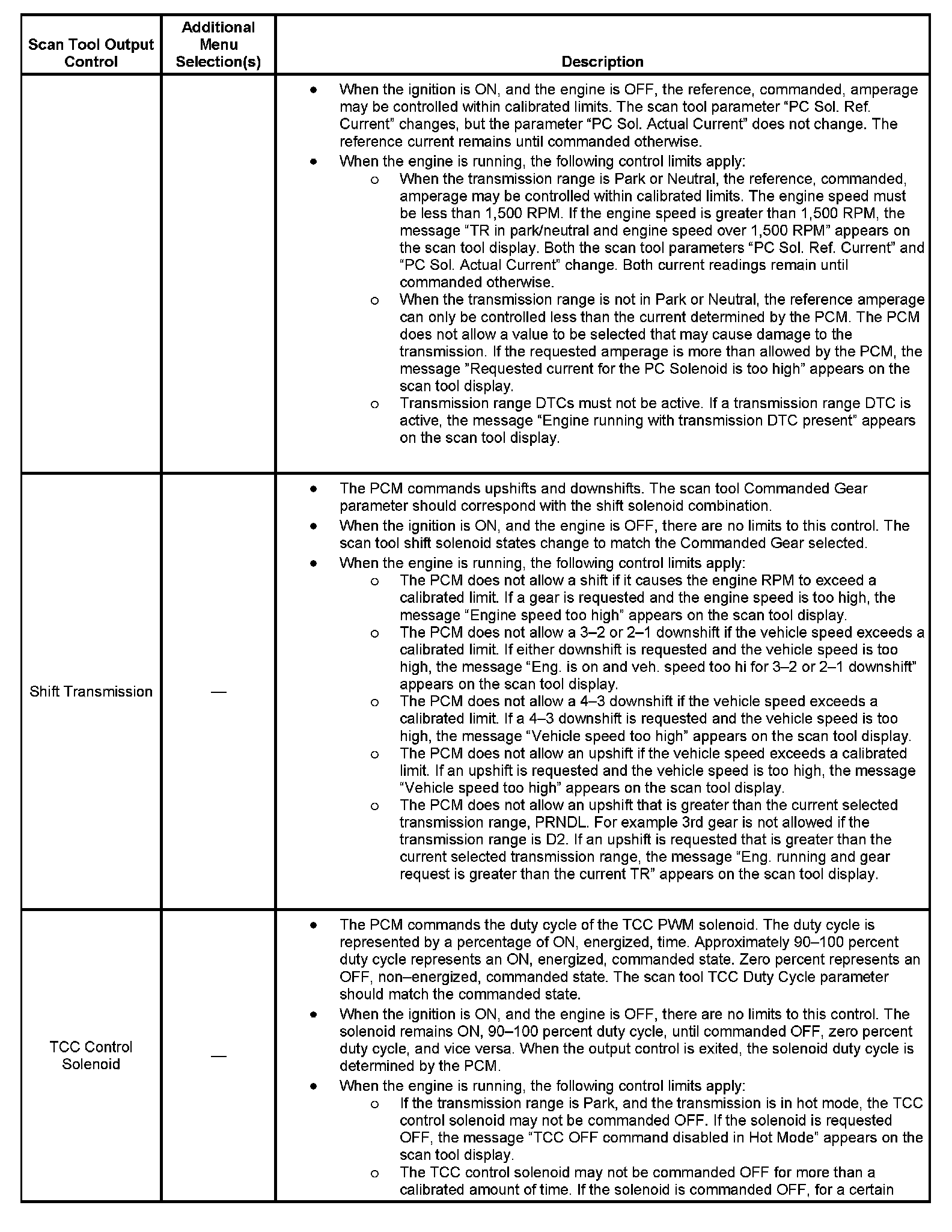 Scan Tool Output Controls