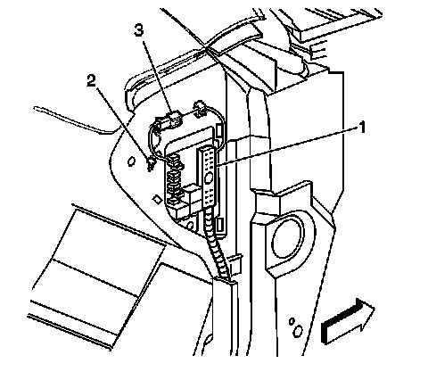17. Disconnect the inflatable restraint I/P module connector (3).
