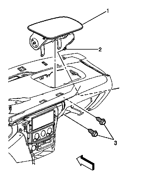 3. Remove the mounting fasteners (3) from the inflatable restraint I/P module.