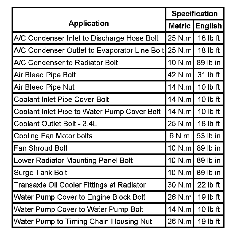 Fastener Tightening Specifications: