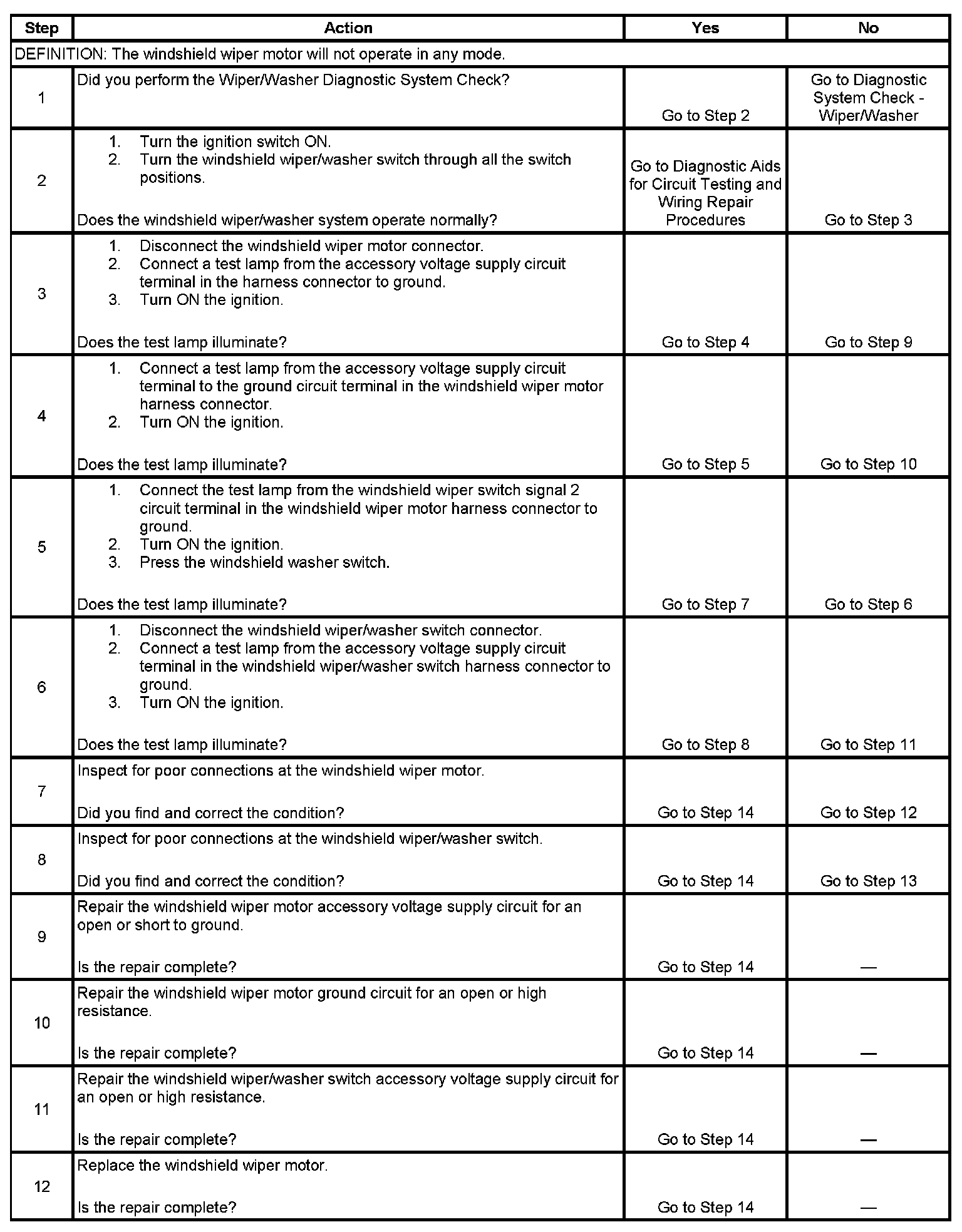 Wipers Inoperative - All Modes