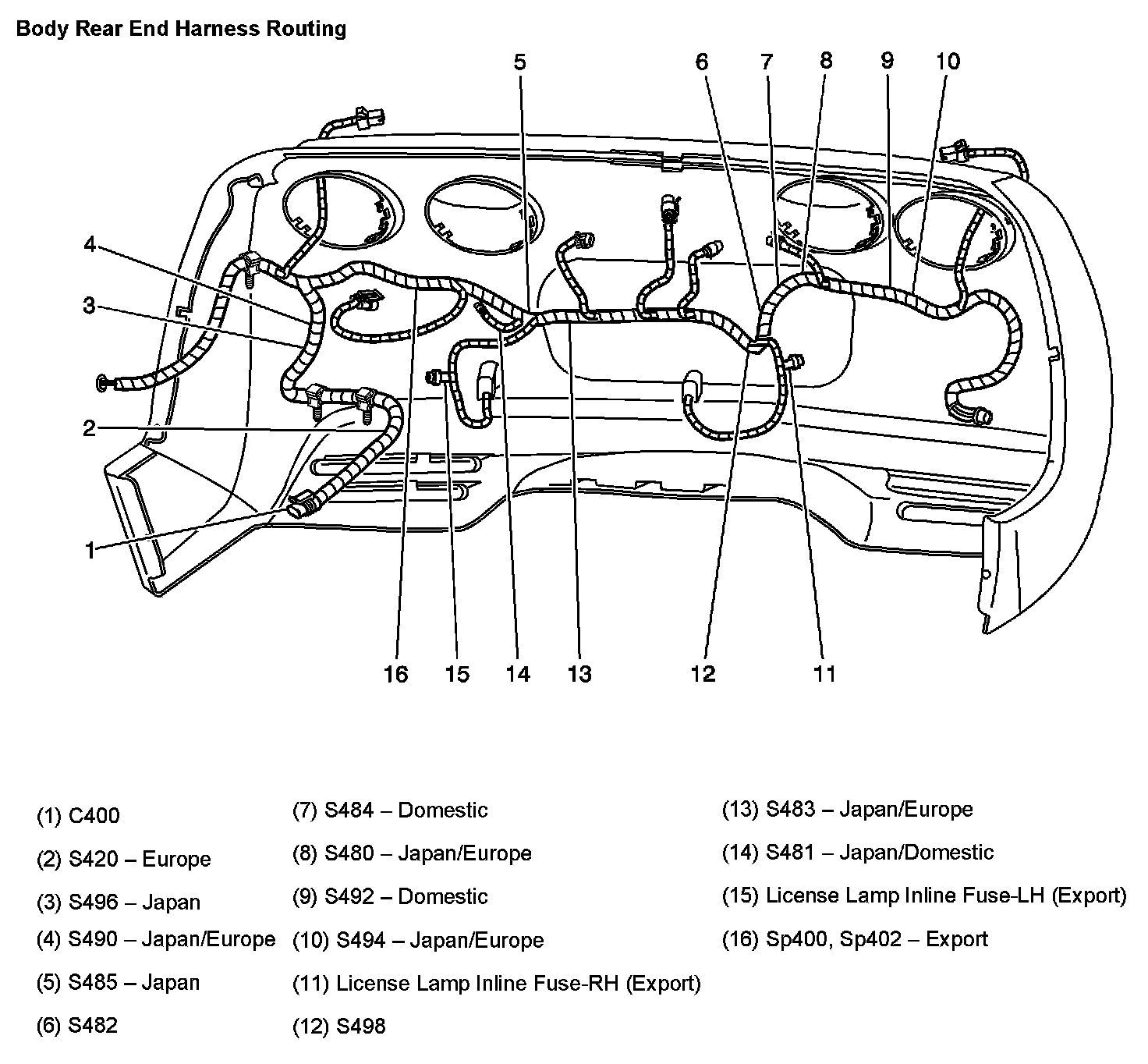 Body Rear End Harness Routing: