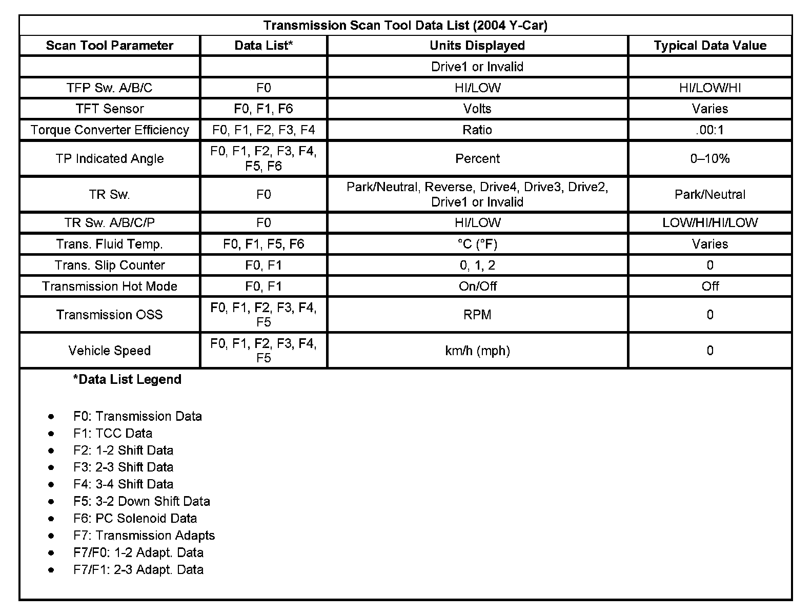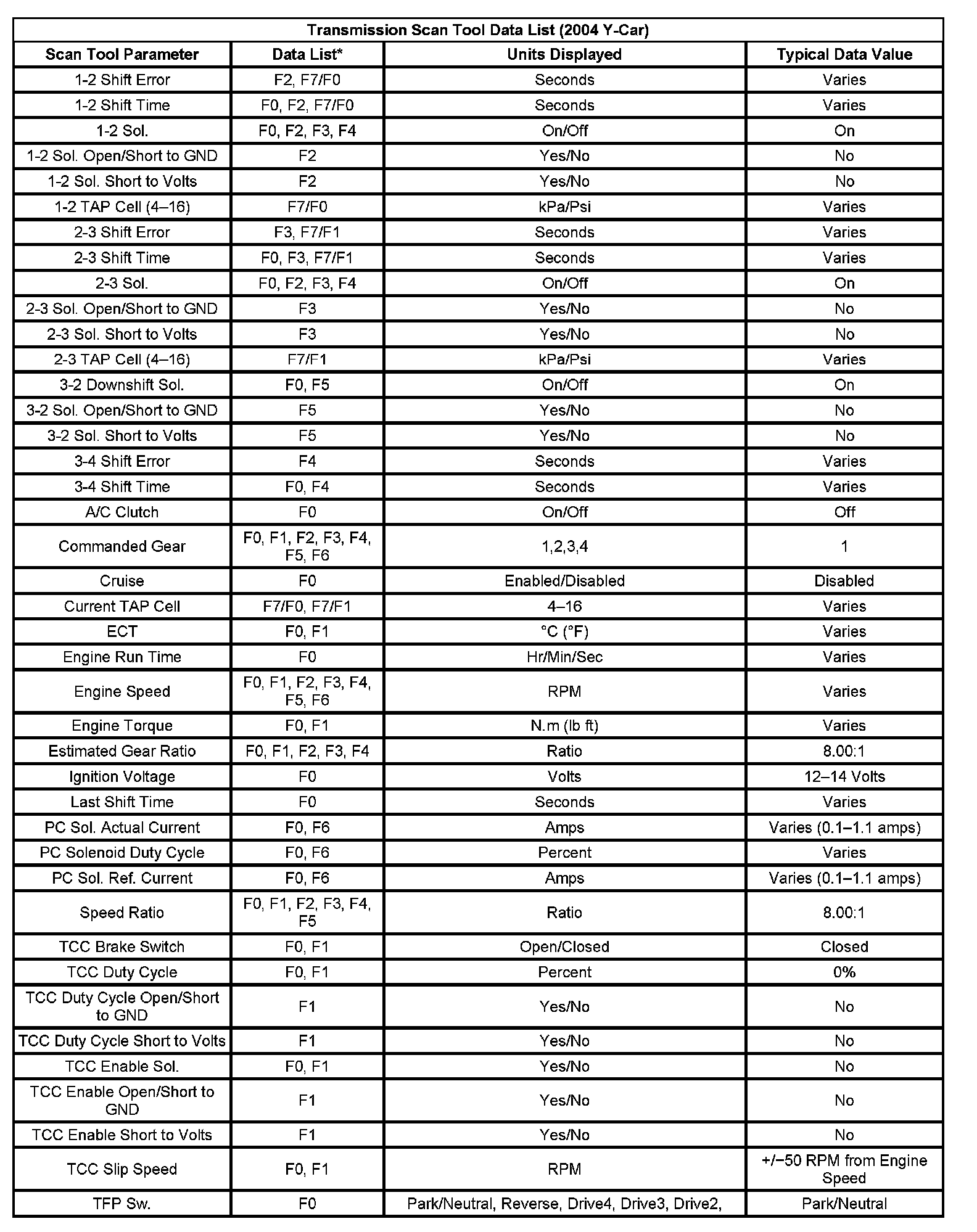 Only the parameters listed below are used in this manual for diagnosing. If a scan tool displays other parameters, the values are not recommended by General Motors for use in diagnosis.