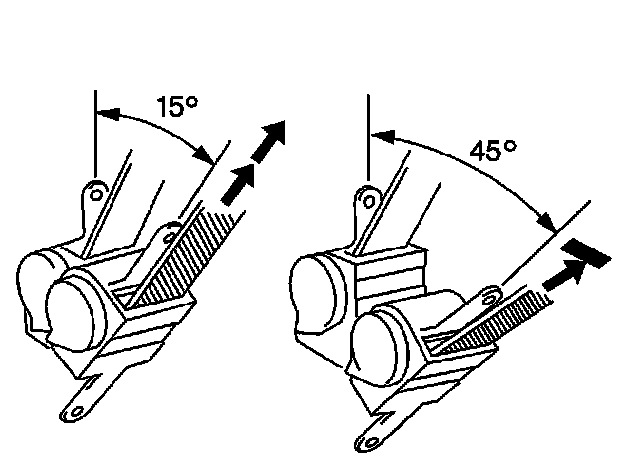 4.3. Check that the seat belt webbing can be pulled from the retractor at an inclination of 15 degrees or less and cannot be pulled from the retractor at an inclination of 45 degrees or more.