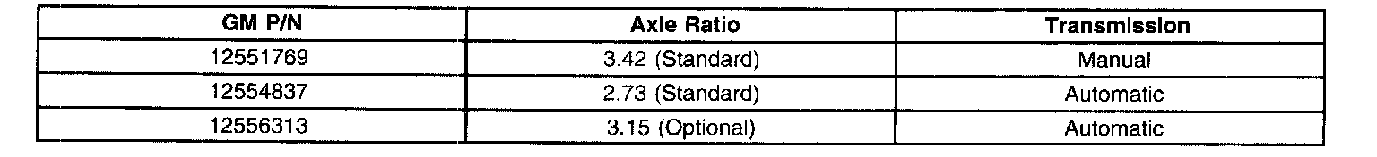 Available Axle Ratios