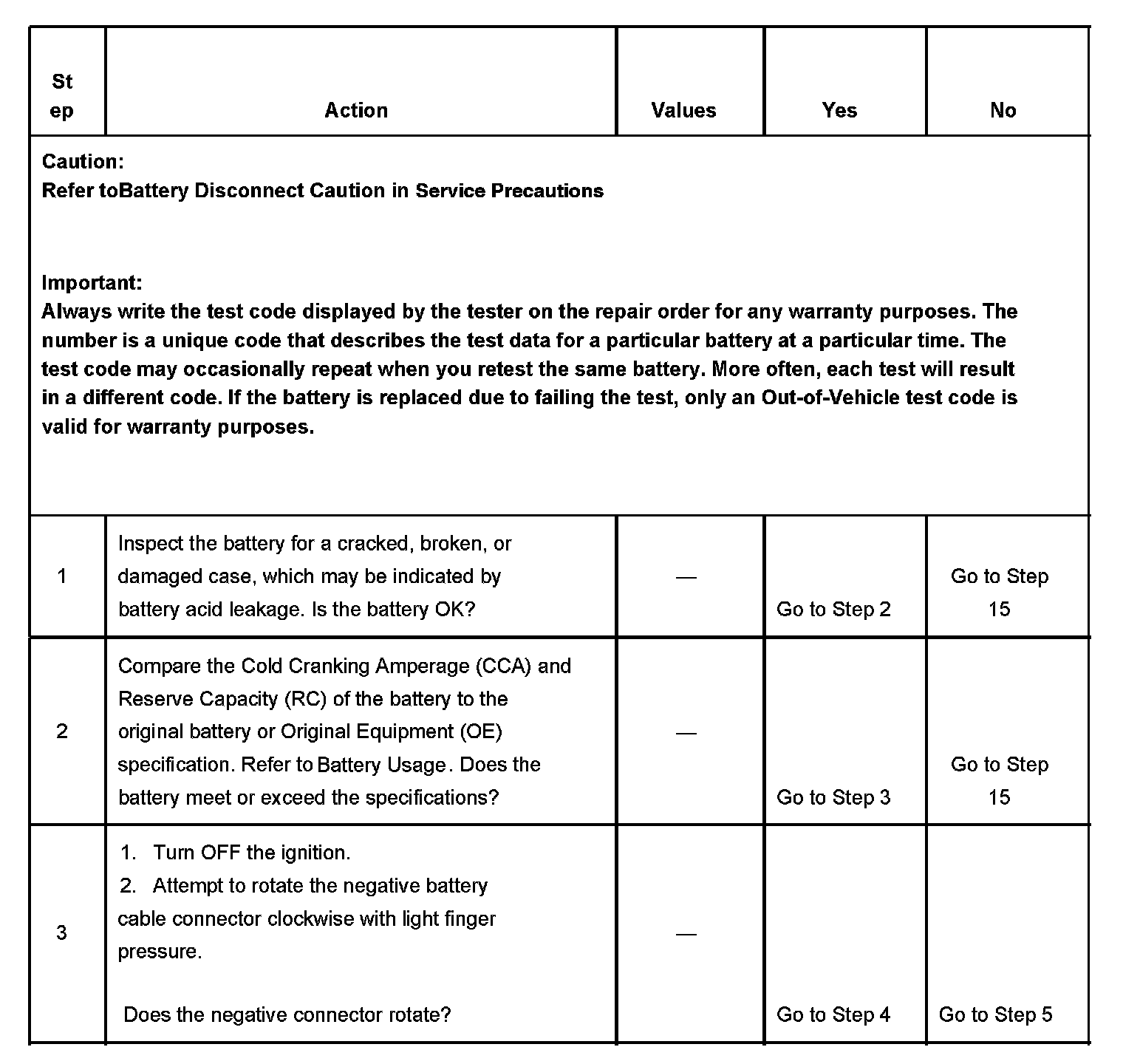 0.5. Replace the battery only if the Out-of-Vehicle test shows a REPLACE BATTERY or BAD CELL-REPLACE result. This prevents battery replacements that are due only to faulty battery cable connections.
