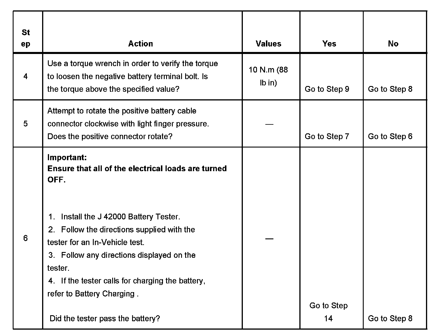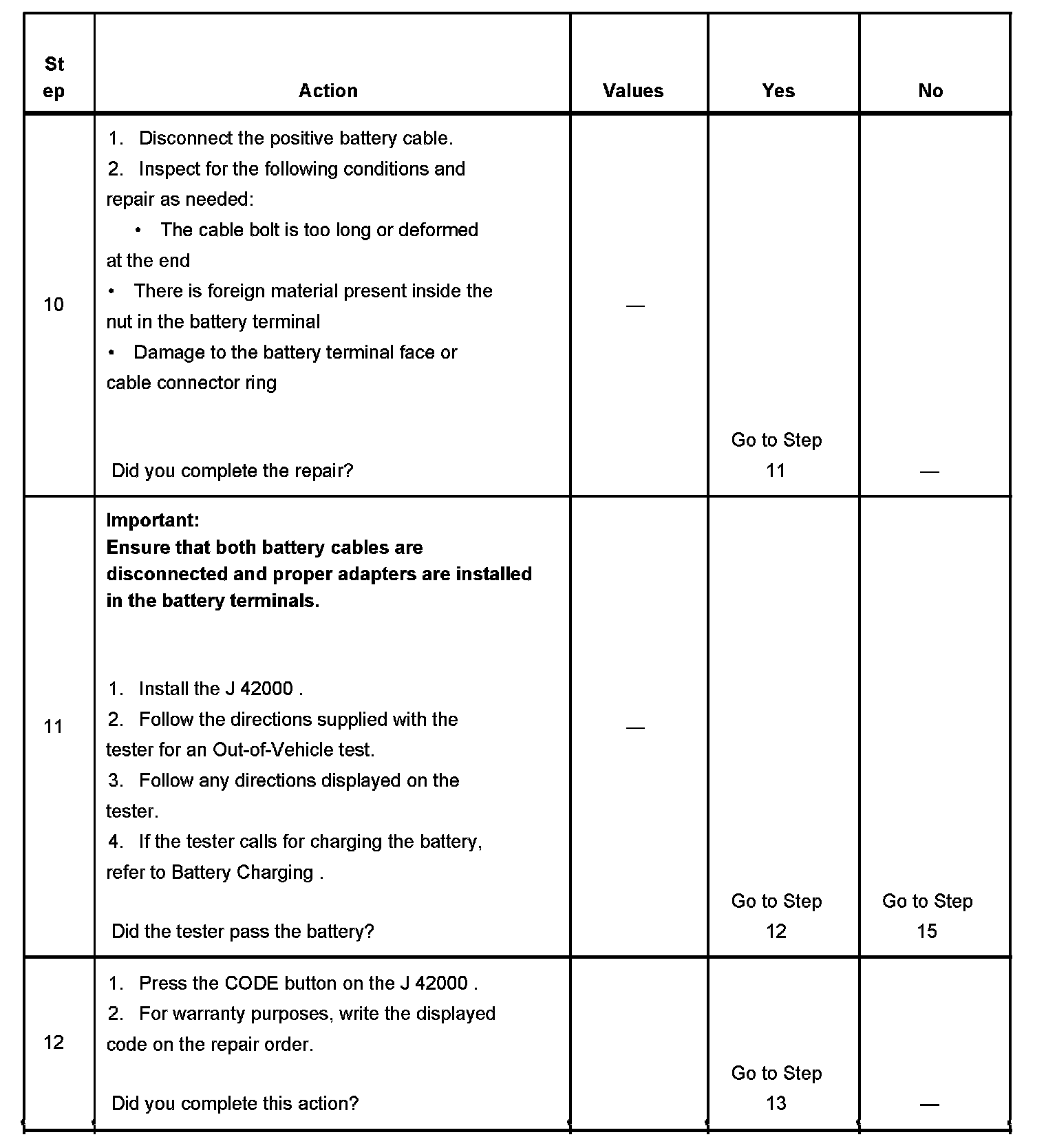 - The battery test using the J 42000 requires correct connections to the battery terminals. A failure to obtain the correct connections during the test may result in a failed test on a good battery.