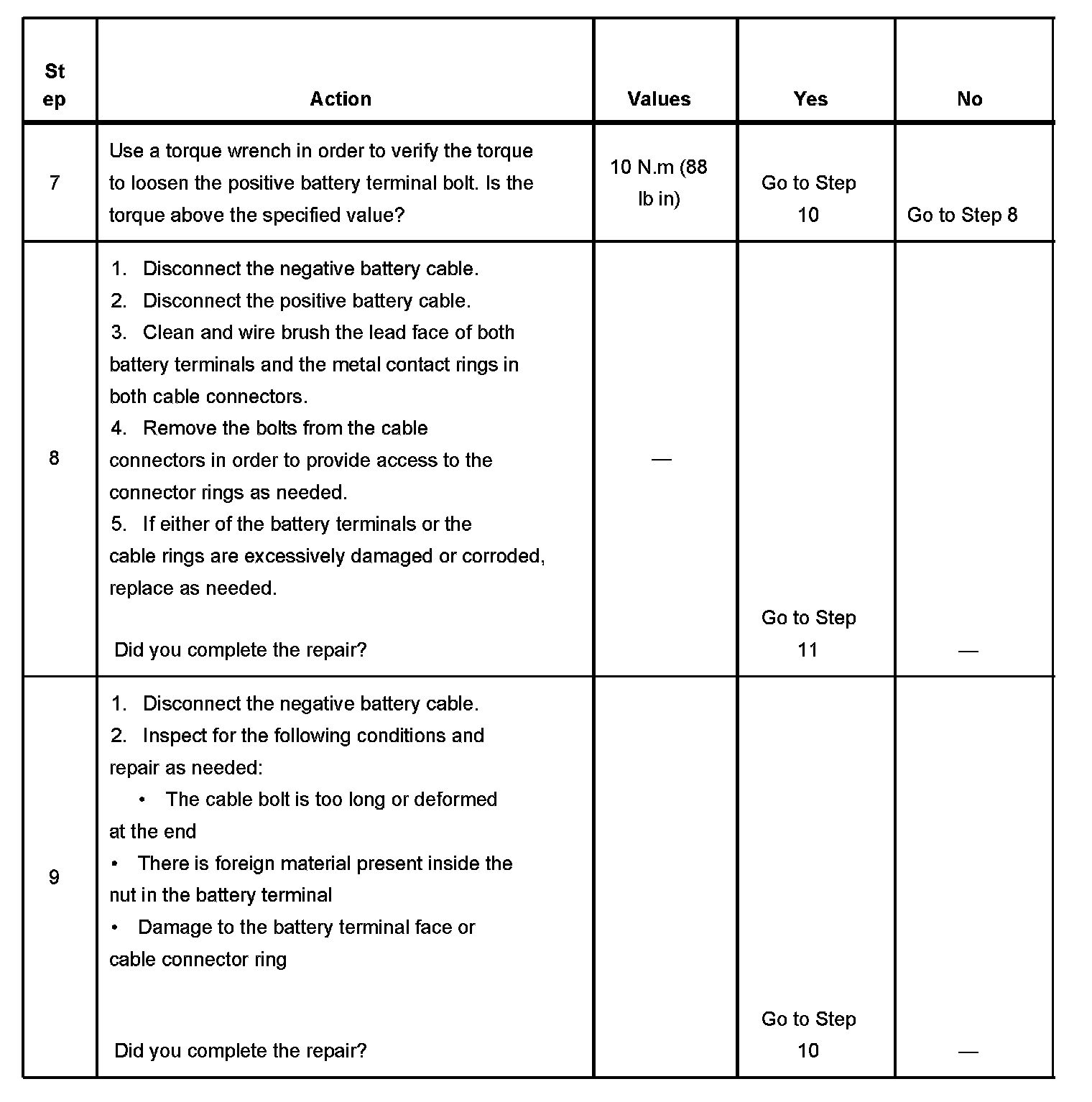 - If correct connections to the battery terminal bolts in the vehicle are in doubt, perform the following steps: