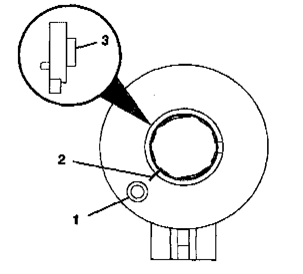 ^ alignment mark (2) on rotor flange cuff (3) for installation
