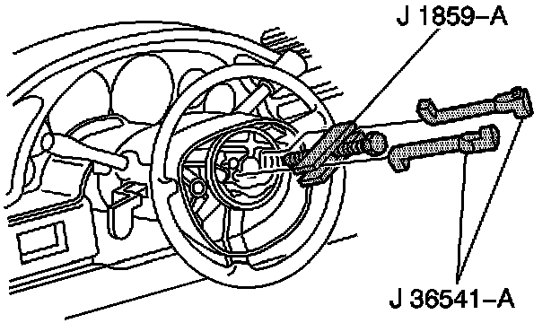 17. Using tool J 1859-A, Steering Wheel Puller, and J 42120, Steering Wheel Puller Legs, remove the steering wheel from the column.