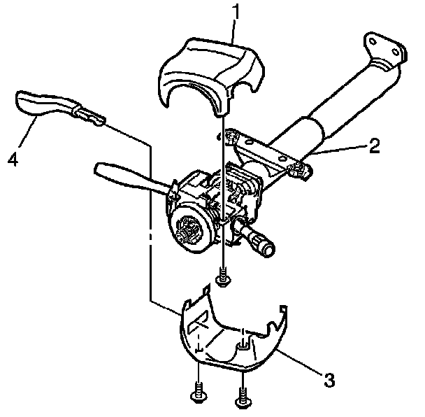 24. Remove the two screws that attach the lower steering column cover (3) to the upper (1).