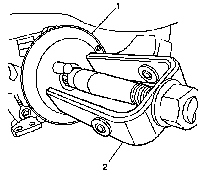 27. Using J 23653-SIR (2), remove the retaining ring and the lock plate (1) and discard both.