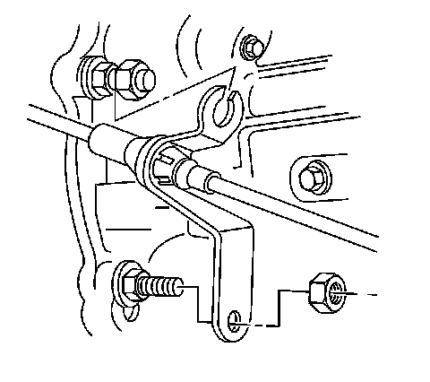 4. Remove the nuts retaining the transmission shift control cable bracket to the transmission.