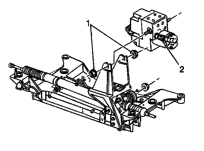 4. Lift the EBCM/BPMV out of the bracket high enough to allow clearance to remove the insulator mounting bolt and the EBCM.