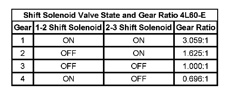 Shift Solenoid Valve State and Gear Ratio 4L60-E