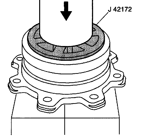 1. Install the inner bearing race into the pinion housing/cage using the J42172 and a hydraulic press, if required.
