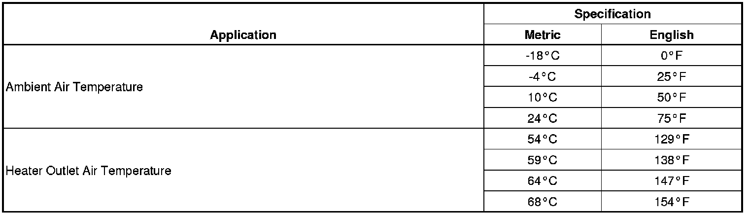 Heater Temperature Specifications