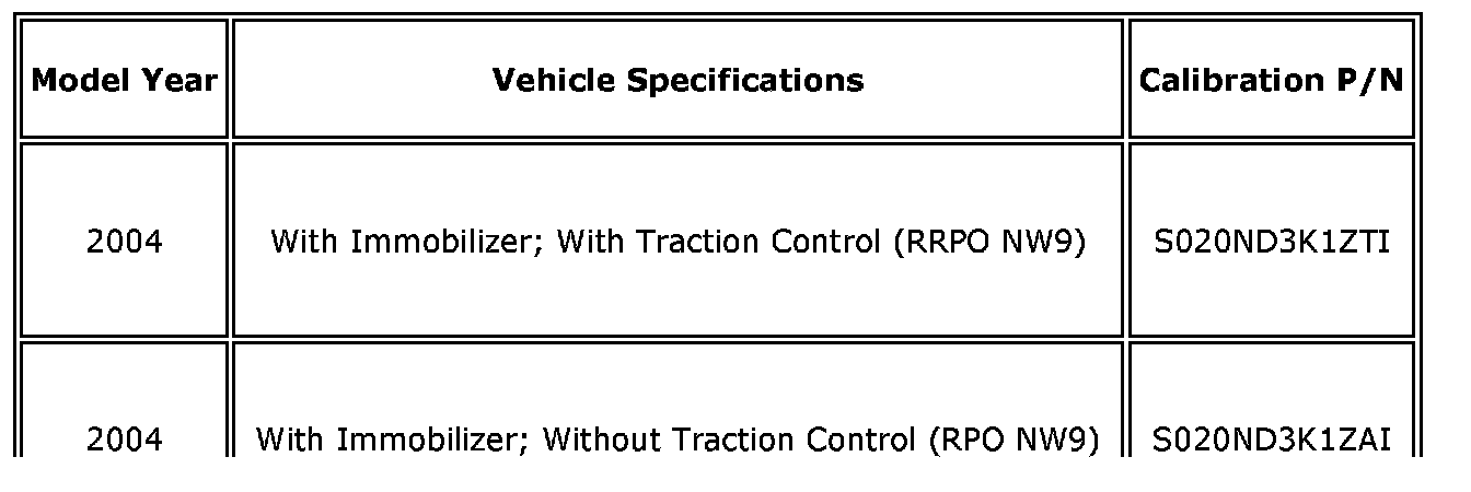 Do not attempt to order the calibration number from GMSPO. The calibration numbers are programmed into the ECM via a Techline Tech 2 scan tool and the Techline Information System (TIS) 2000 terminal with the calibration update. Use TIS data version 1.00 or later, broadcast to dealers via GM Access on January 5, 2006, and on the latest TIS 2000 CD-ROM version # 1.35/2006, available after January 23, 2006