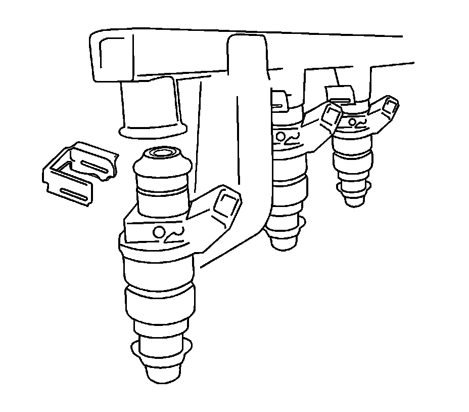8. Remove the fuel injector retainer clip.