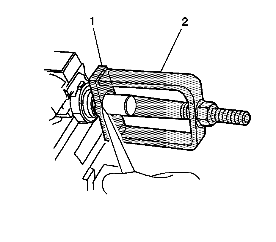 12. Remove the 2 pivot pins using the J 21854-01 (1).