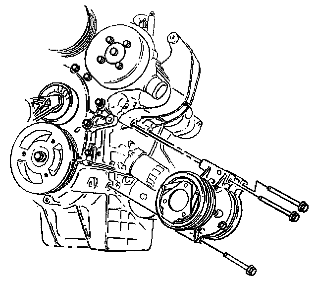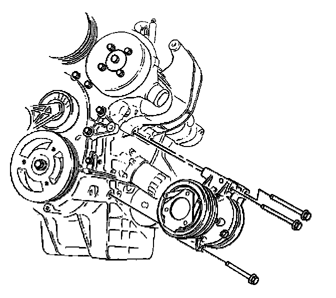 13. Remove the lower mounting bolt from the A/C compressor.
