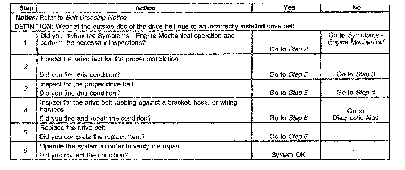 Drive Belt Excessive Wear DiagnosisDiagnostic Aids