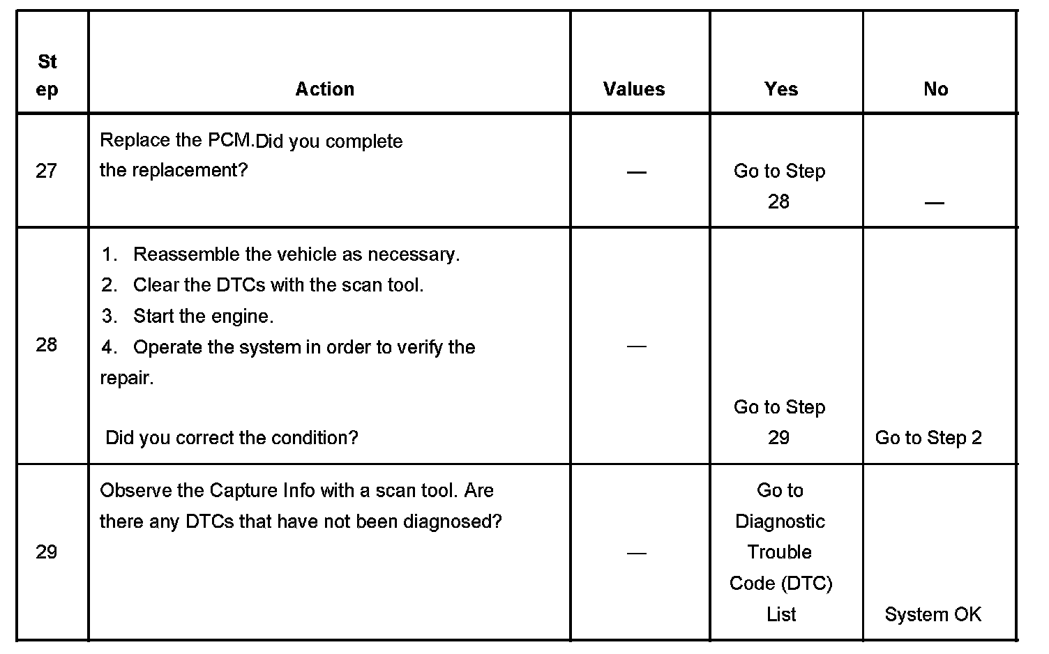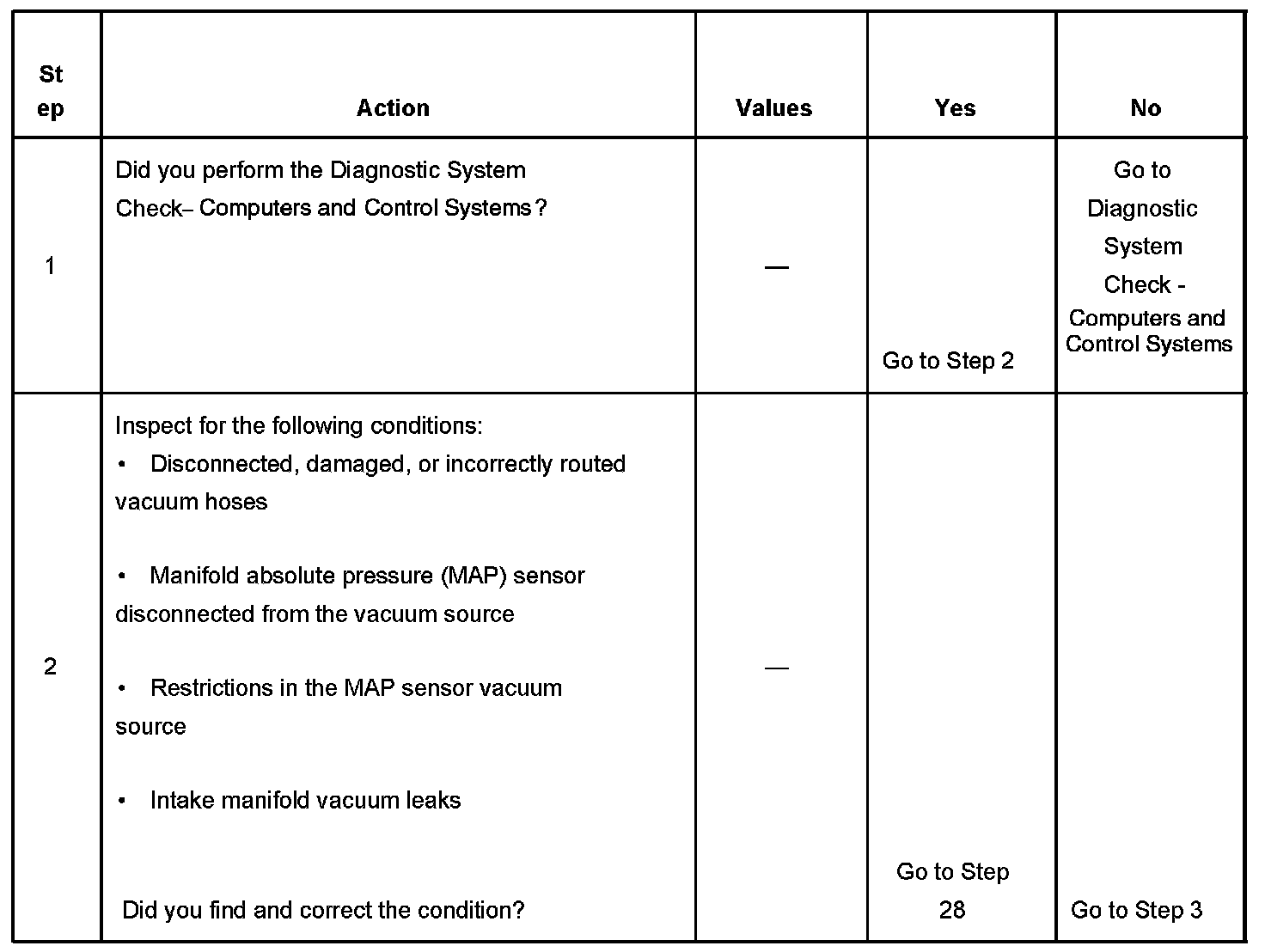 The number below refers to the step number on the diagnostic table.