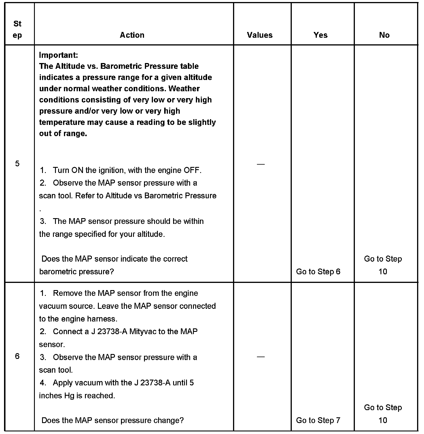 4. This step tests the ability of the MAP sensor to correctly indicate BARO.