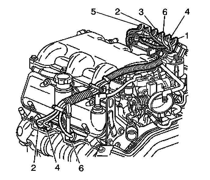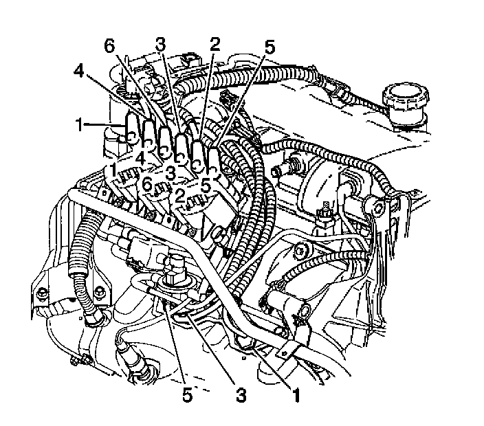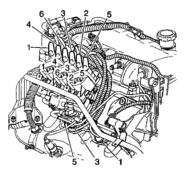 5. Install the spark plug wires 2, 4, and 6 to the engine left side spark plugs.