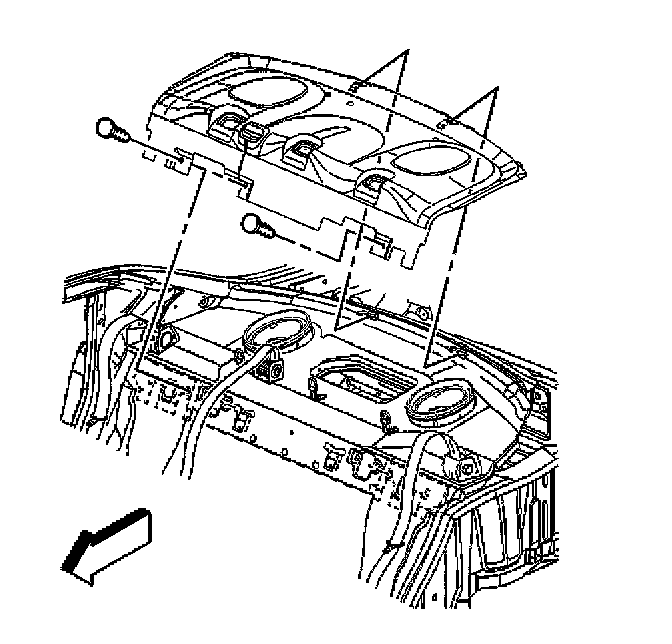 6. Slide the rear window trim panel forward to disengage the integral hook from the retaining hole and remove the rear window trim panel.
