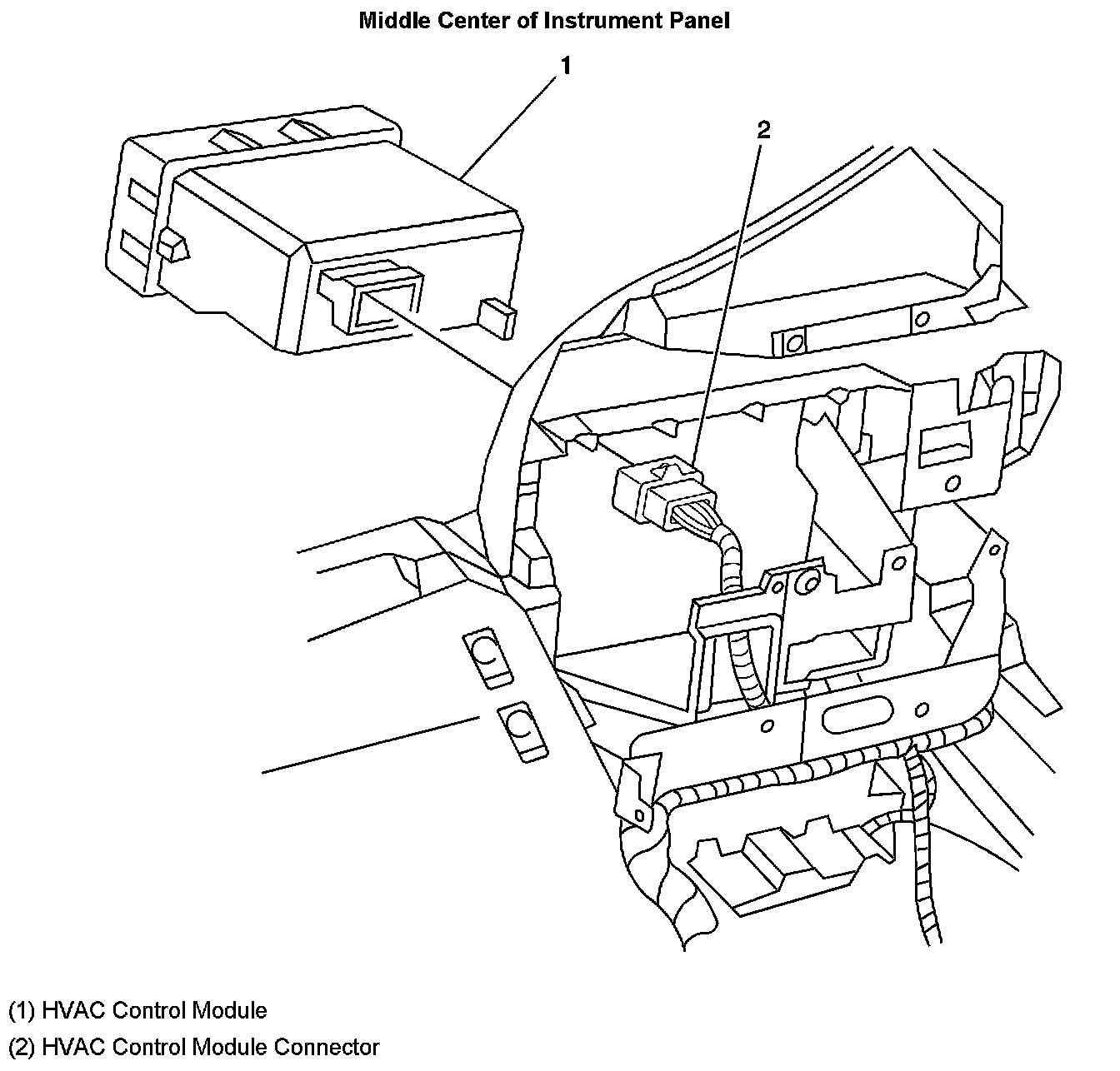 The HVAC Control Module is located in the center of the Instrument Panel.