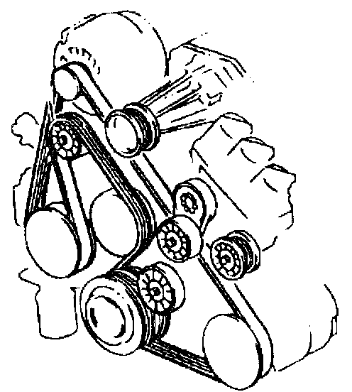 The supercharged 3800 engine utilizes two drive belts. The outer drive belt drives the supercharger. The inner drive belt drives the following components: