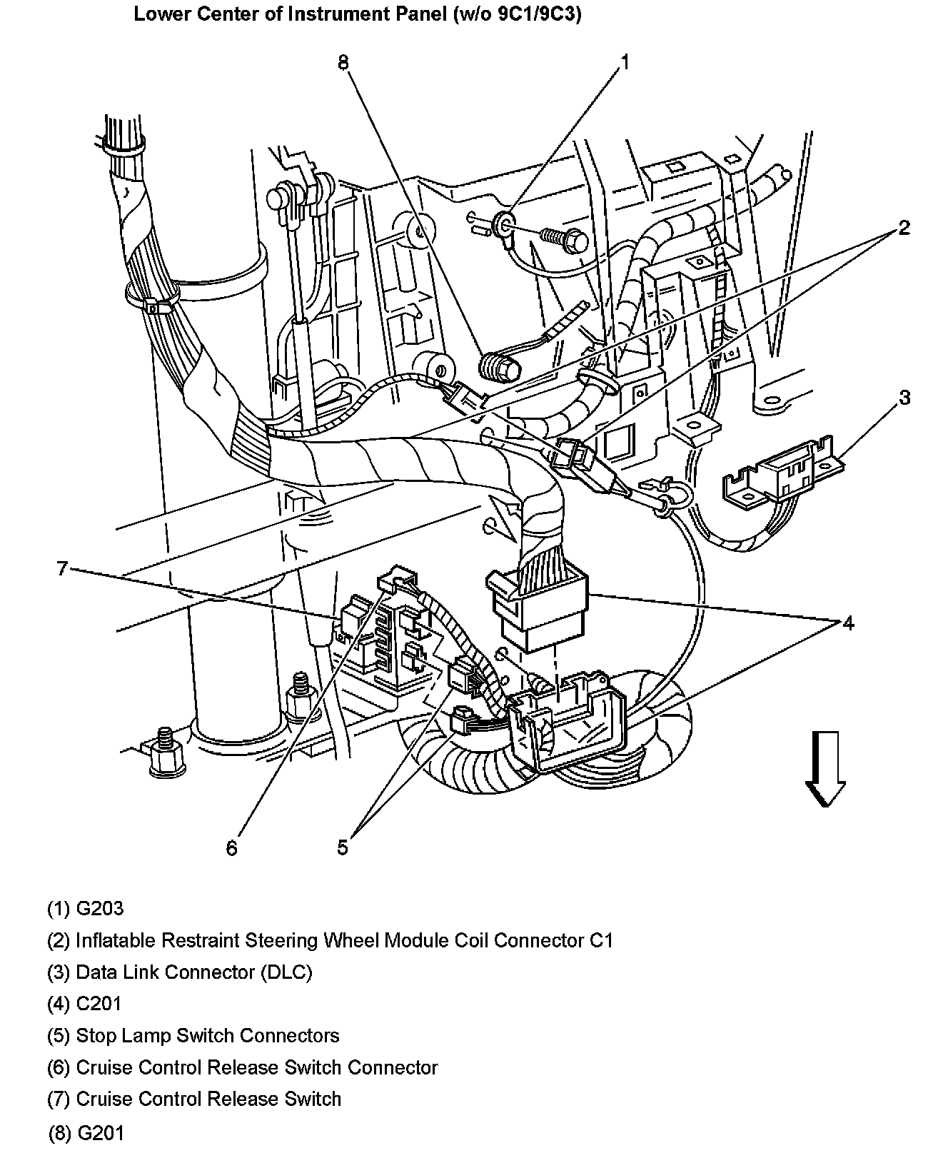 Lower Center Of Instrument Panel (Without RPO Code 9C1/9C3):