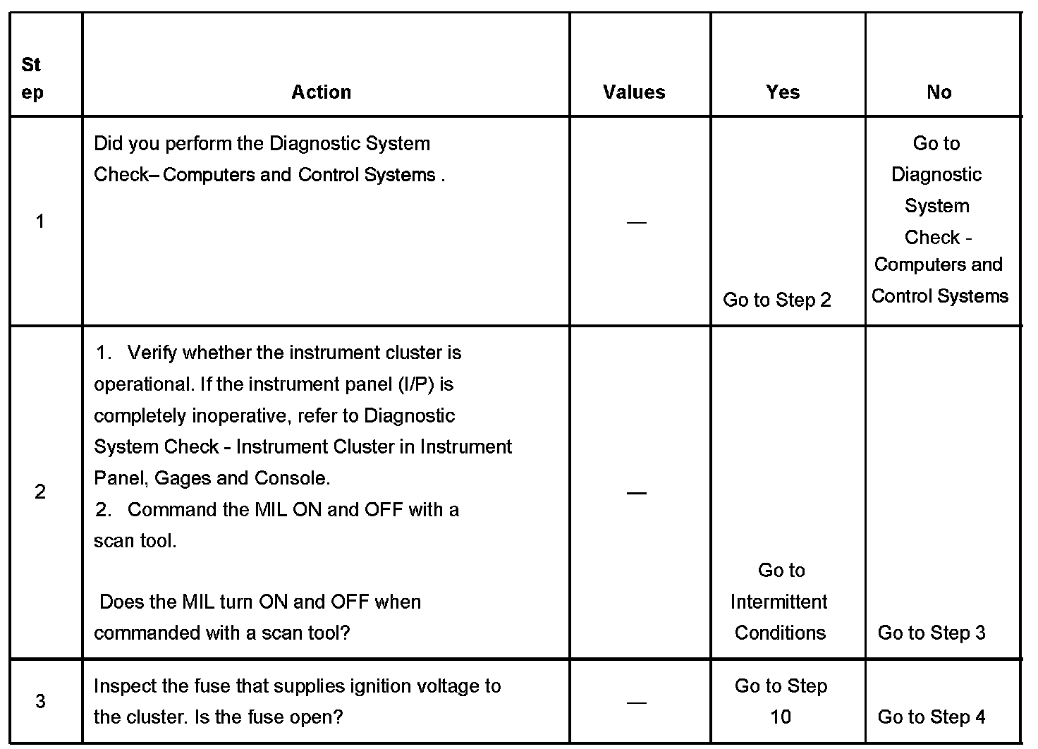 - The MIL will turn OFF when the engine is started.