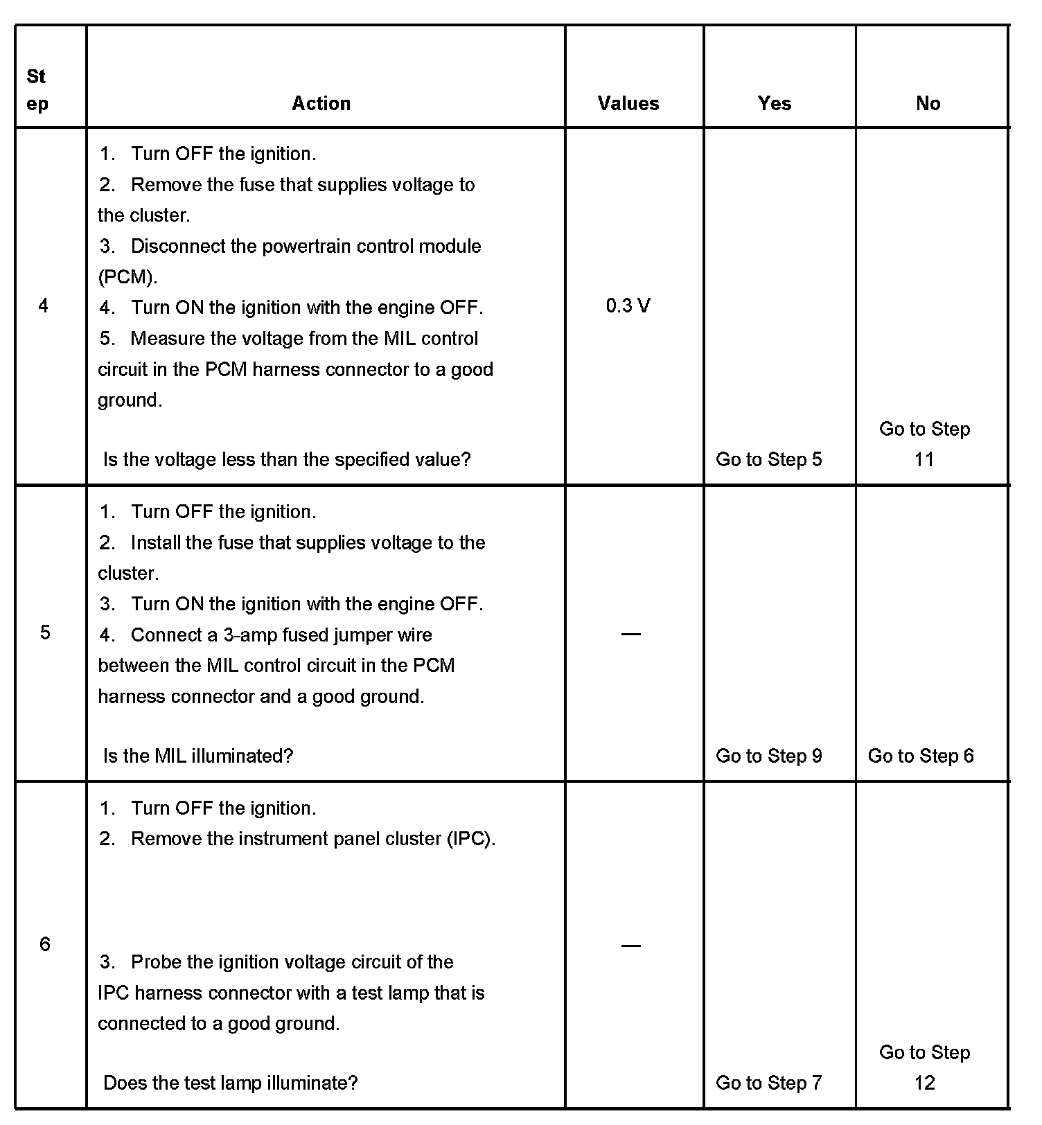 4. This step tests for a short to voltage on the MIL control circuit. With the fuse removed there should be no voltage on the MIL control circuit.