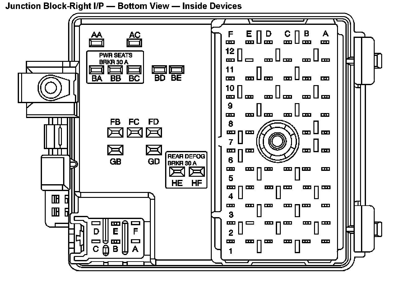 Right I/P - Junction Block - Bottom View - Inside Devices