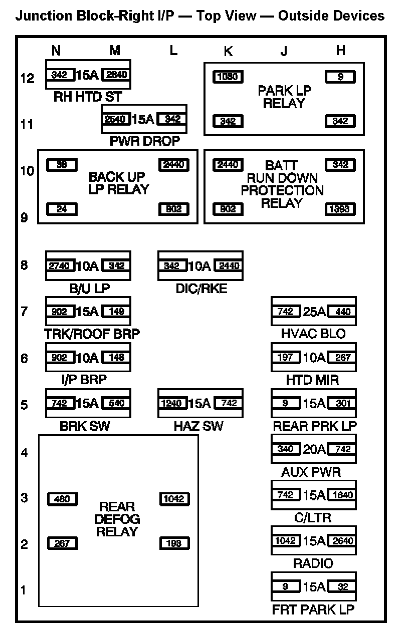 Right I/P - Junction Block - Bottom View - Outside Devices