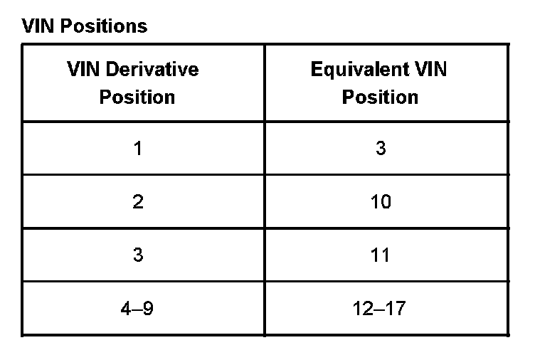 All engines and transmissions are stamped or laser etched with a partial vehicle identification number (VIN), which was derived from the complete VIN. A VIN derivative contains the following nine positions.
