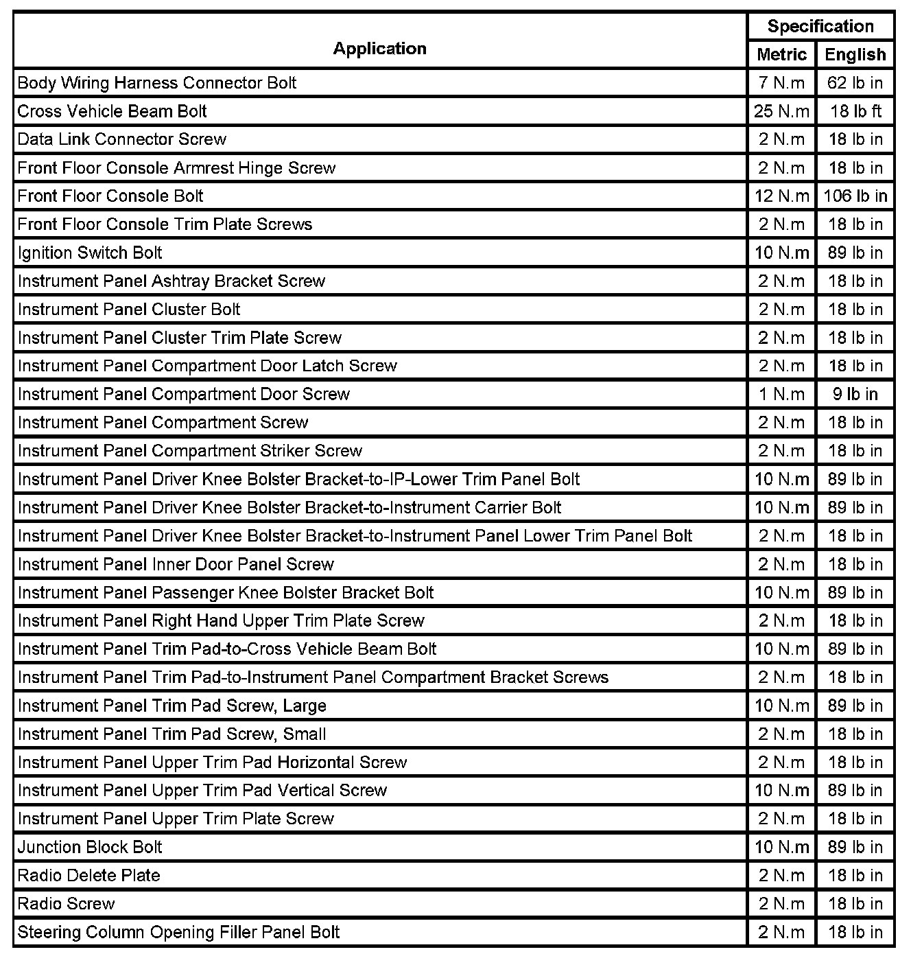 Fastener Tightening Specifications