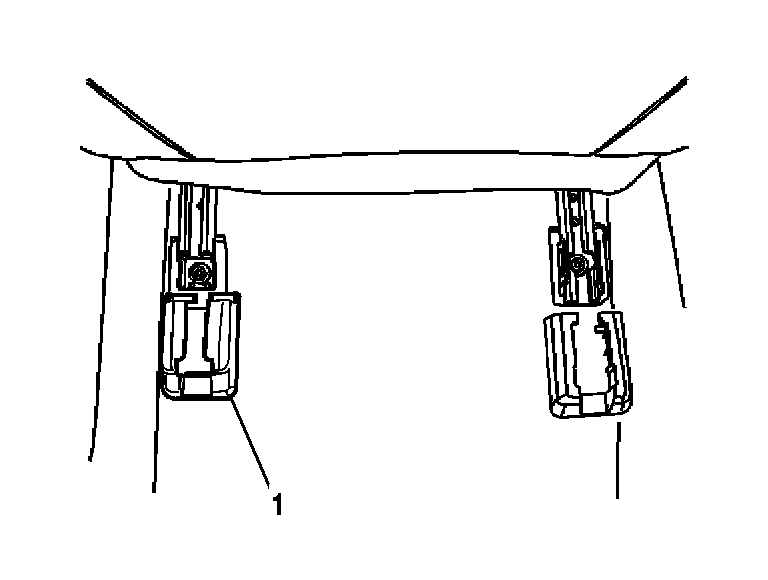 1. For the power seat, to install the covers (1) spread the arms and push forward onto the rear end of the seat adjuster track.