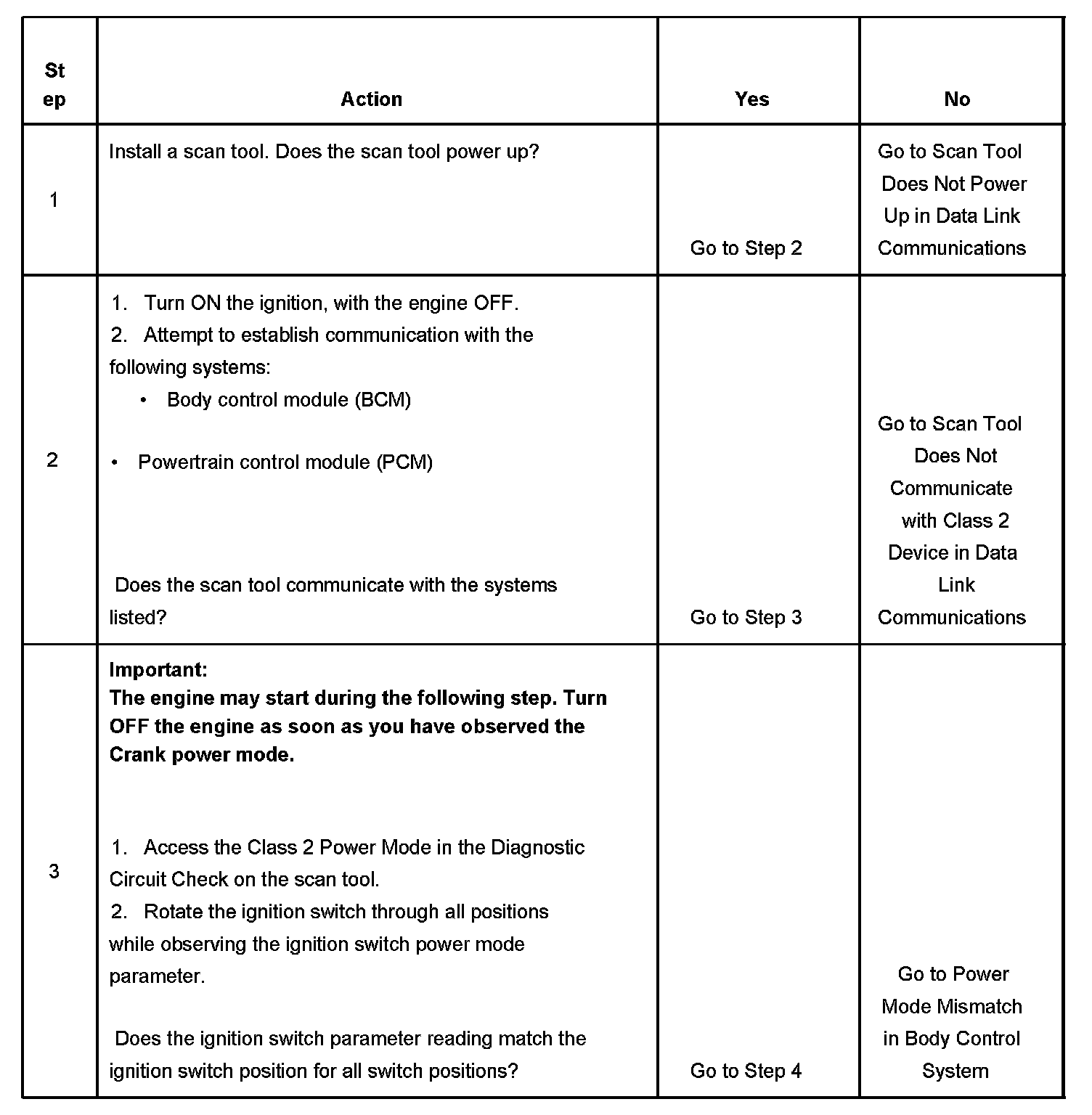 2. Lack of communication may be due to a partial malfunction of the class 2 serial data circuit or due to a total malfunction of the class 2 serial data circuit. The specified procedure will determine the particular condition.