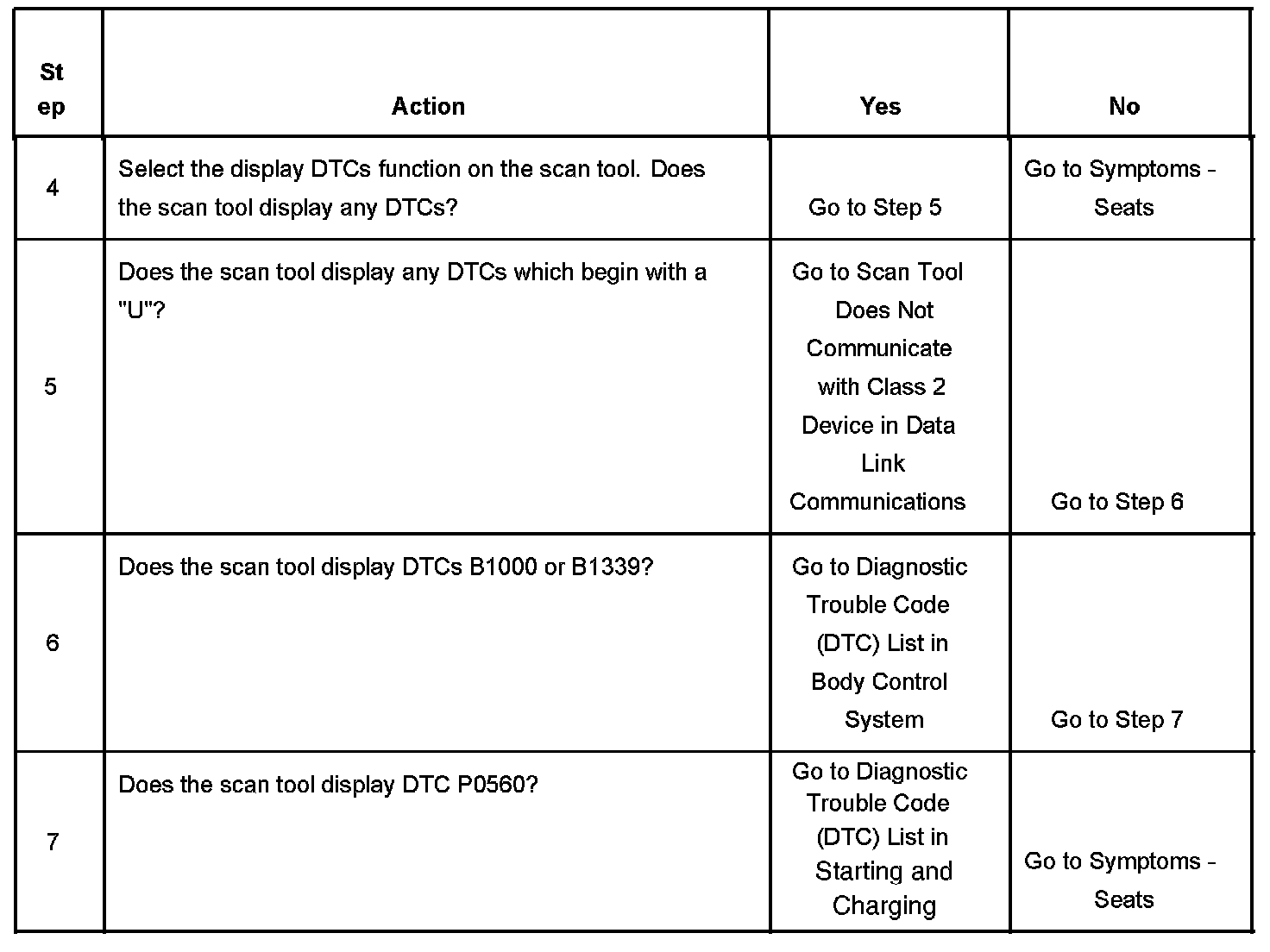 DIAGNOSTIC SYSTEM CHECK - POWER SEAT SYSTEMSTEST DESCRIPTION