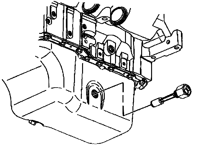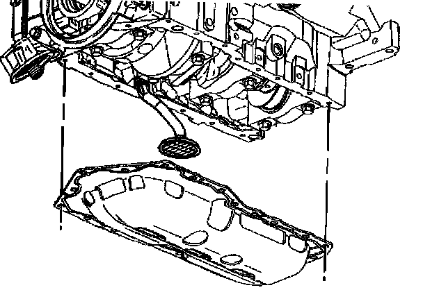 Notice: Remove the oil level sensor, located in the oil pan, before the oil pan is removed. The sensor may be damaged if the oil pan is removed first.