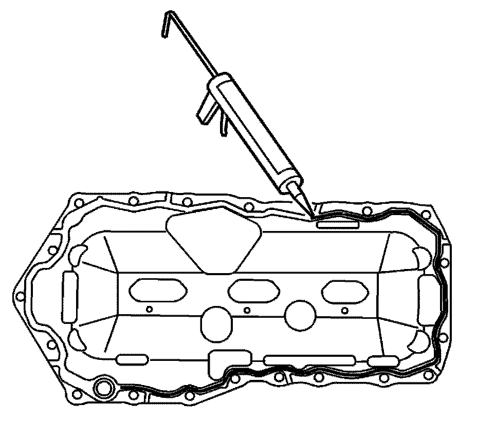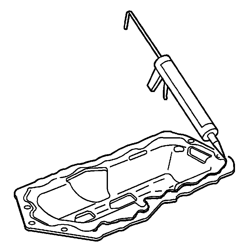 4. For aluminum oil pans, apply a continuous bead 6.35 mm (0.25 in) thick of RTV sealer GM P/N 12378521 (Canadian P/N 88901148), ensuring that the sealer also completely fills the groove in the oil pan.
