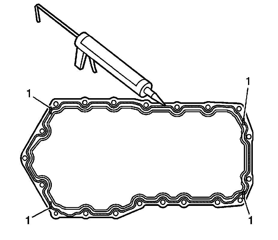 1. For steel oil pans, apply a continuous bead 6.35 mm (0.25 in) thick of RTV sealer GM P/N 12378521 (Canadian P/N 88901148) to the topside of the new windage tray gasket. Apply the RTV sealant directly over the sealing bead.