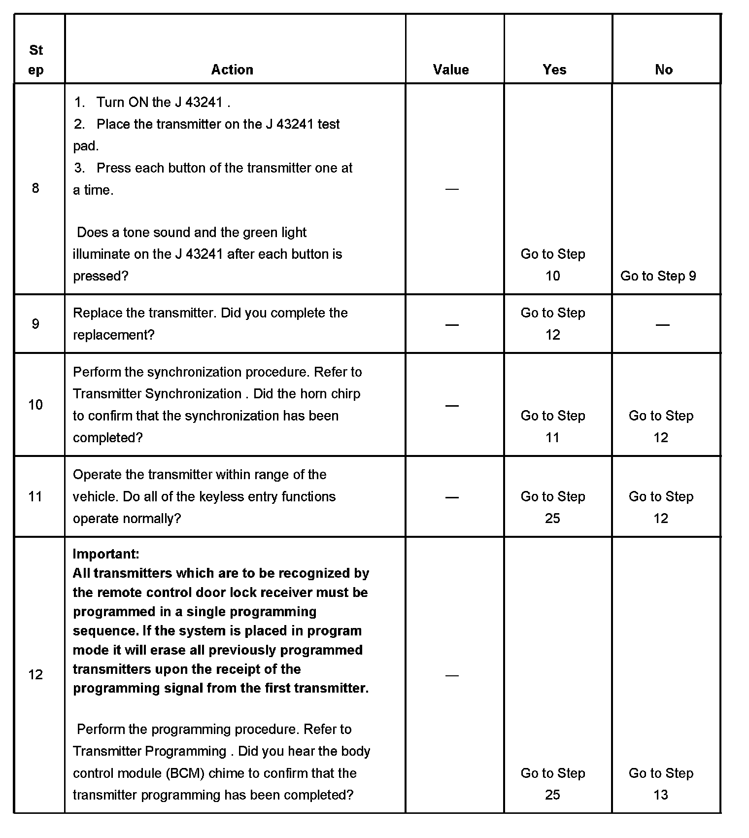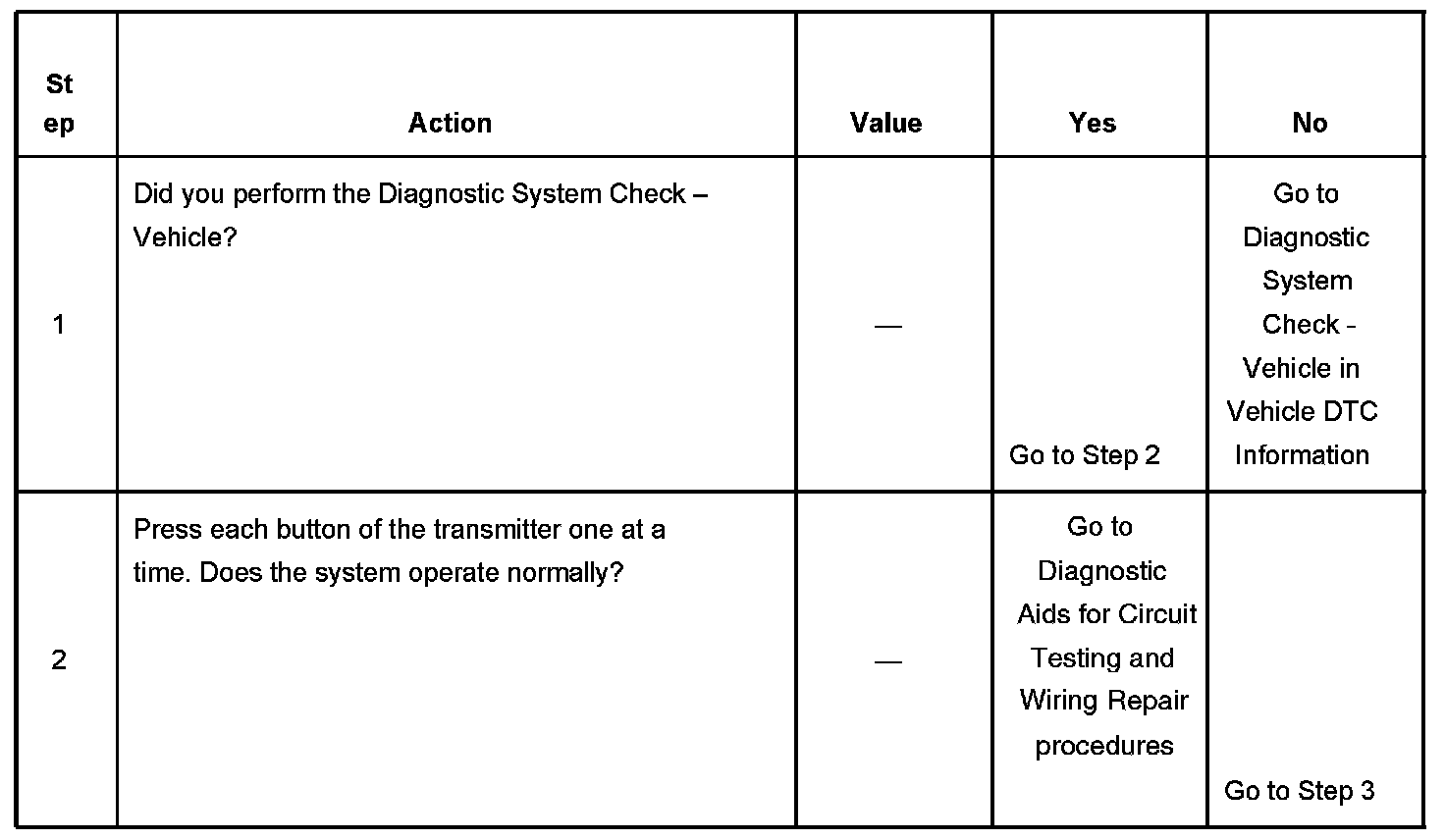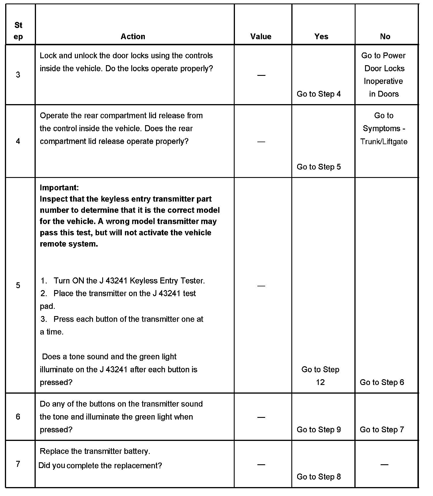 KEYLESS ENTRY SYSTEM INOPERATIVETEST DESCRIPTION